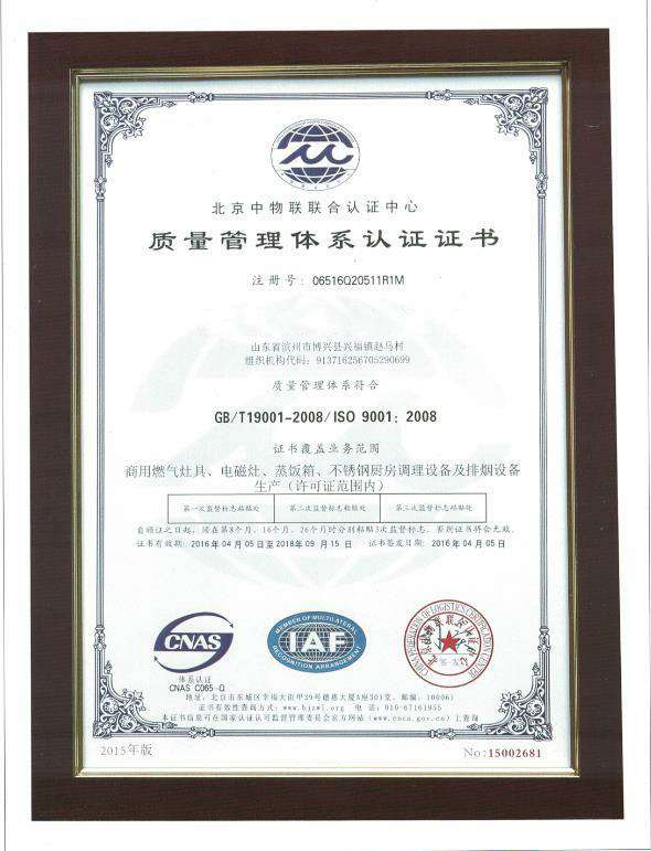 质量管理体系认证证书